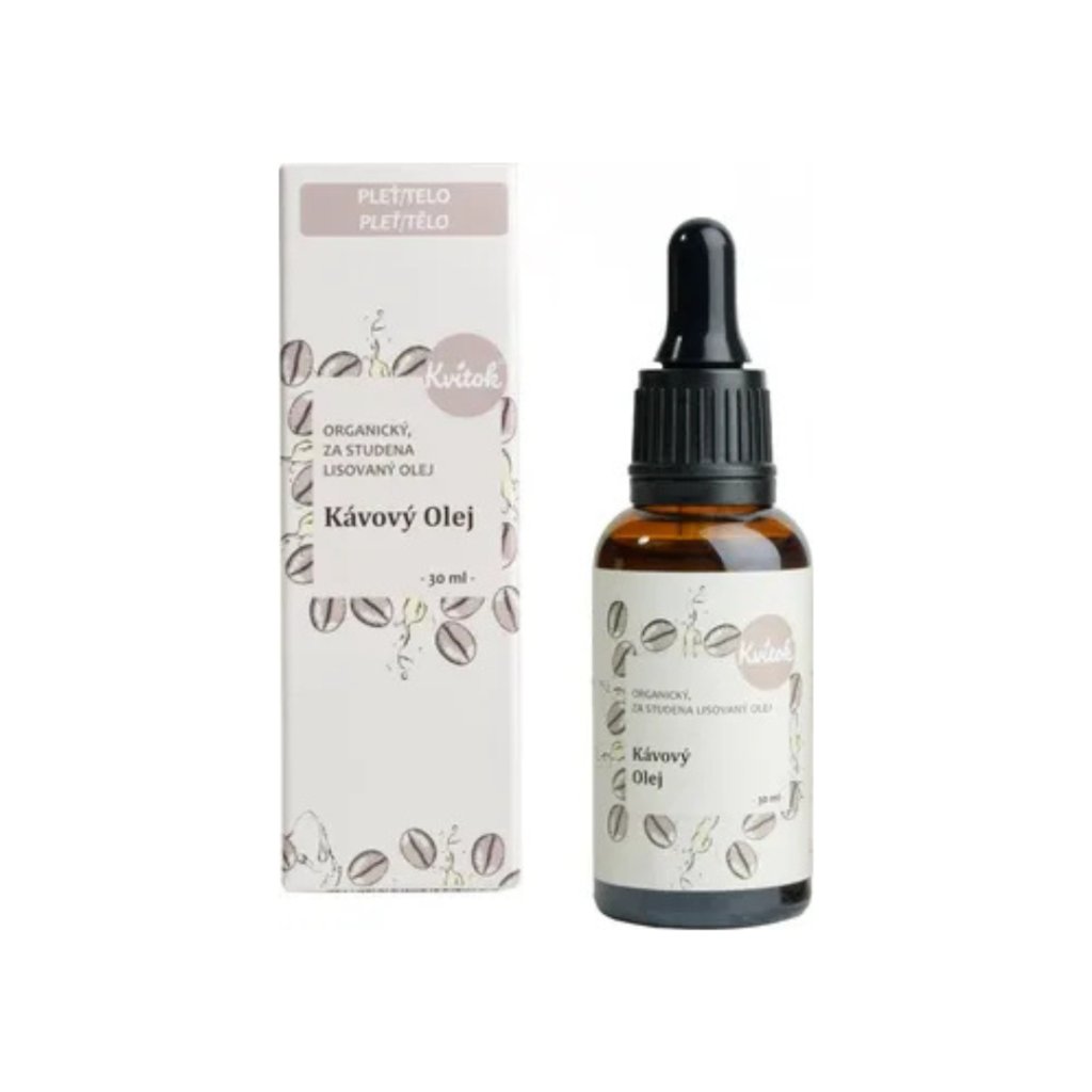 Přestože molekuly kofeinu jsou rozpustné ve vodě, část z nich přechází při lisování i do oleje, takže finální olej obsahuje malé množství kofeinu a enzymy, díky čemuž napomáhá odbourávání tuků, vyhlazení pokožky, a tím i zjemnění celulitidy .